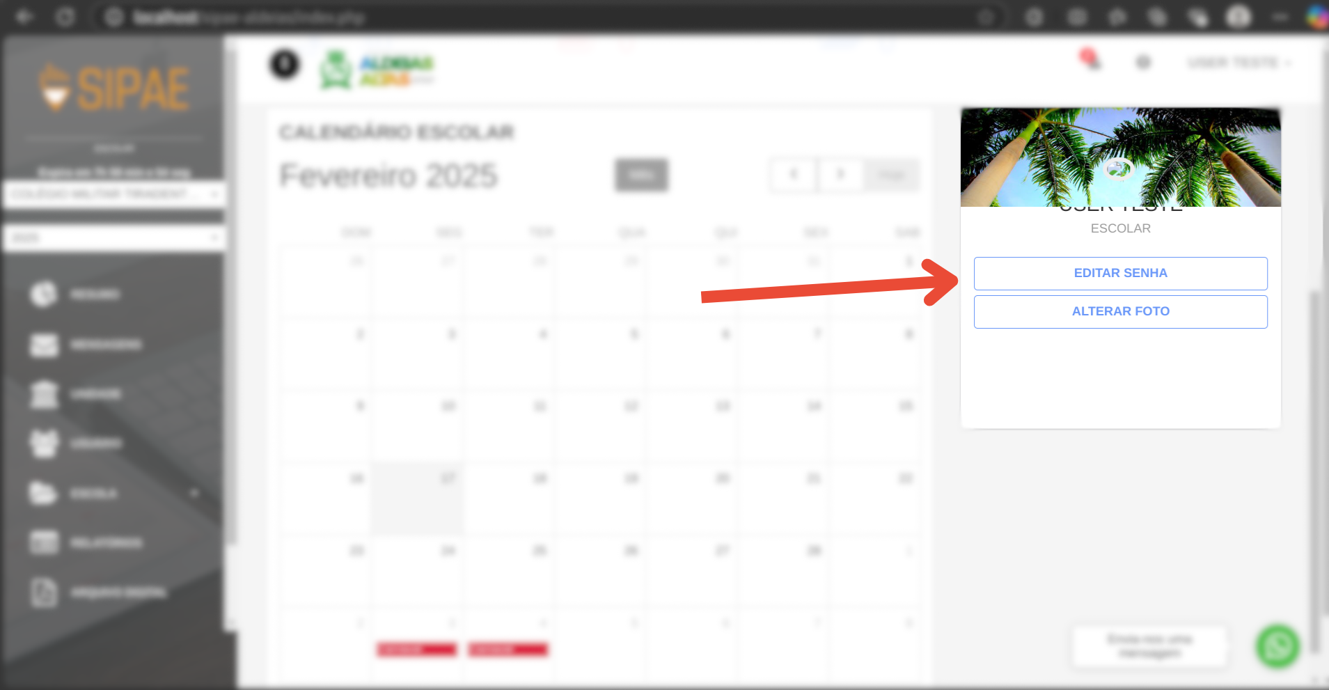 - Arraste a tela até encontrar o card de perfil e clique em "EDITAR SENHA"